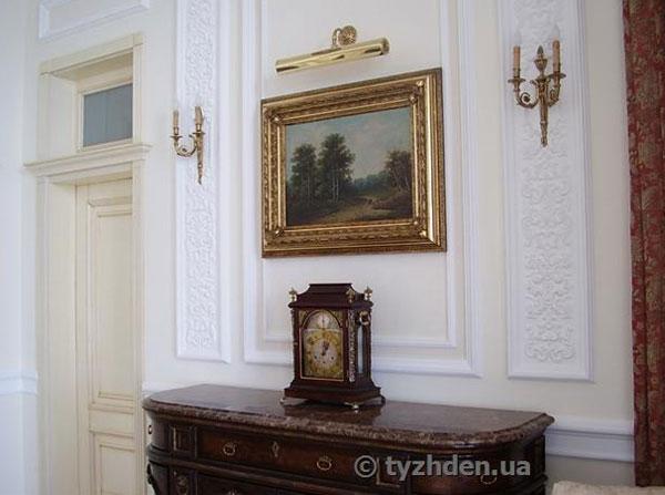| Говорят, что камин из белого мрамора с позолотой в холле здания - точная копия того, что на даче у Путина. Вроде бы, его строили одни мастера |