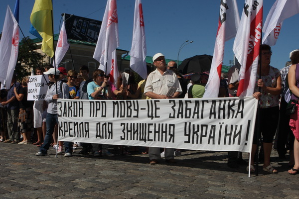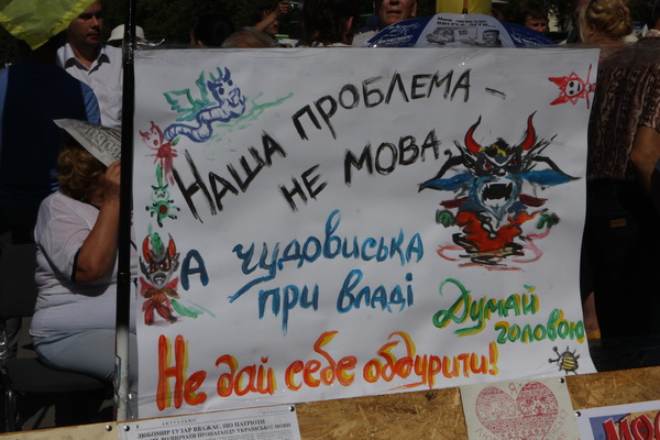 Как сообщает с места событий корреспондент "Главного", на митинг собрались около 500 человек. К собравшимся вышли депутаты областного совета от "Батькивщины". Как подчеркнул один из них – Иван Варченко, сегодня власть мертвой хваткой вцепилась в вопрос придания русскому языку хотя бы статуса регионального, т.к. это было одно из предвыборных обещаний регионалов, которое более двух лет власть не волновало.