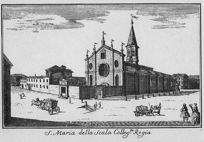 В 1778 году в Милане открылось здание оперы «Ла Скала», построенное архитектором Джузеппе Пьермарини на месте церкви Санта-Мария делла Скала, откуда произошло и название самого театра. Церковь, в свою очередь, получила название в 1381 году не от «лестницы» (scala), а от покровительницы — представительницы рода правителей Вероны по фамилии Скала (Скалигер) — Беатриче делла Скала. Театр был открыт 3 августа 1778 года постановкой оперы Антонио Сальери «Признанная Европа». на месте старой церкви Санта Мария делла Скала.