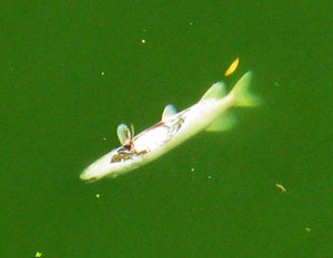 В реках Харькова – Лопани и Харькове – всплыла рыба. В горсанэпидстанции говорят: виной всему необычайно жаркая погода. Жара спровоцировала нехватку кислорода в воде и рыба начала задыхаться.
