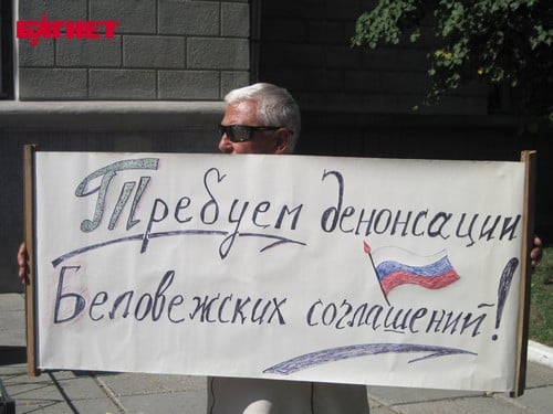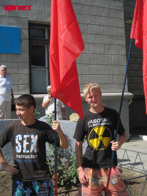 Как пишет Багнет, участники акции держали в руках российские флаги, флаги СССР, а также плакаты "Верните нам Родину", "Мы не любим Украину", "Требуем денонсации Беловежских соглашений". При этом дети, привлеченные пенсионерами к акции, стояли в футболках с надписью "Секс инструктор" и "Работаю на витаминах".