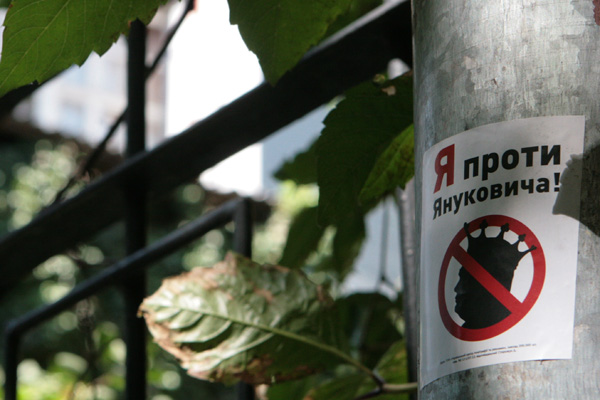 Сегодня в Харькове с рабочим визитом находится Виктор Янукович. Улицы города встретили Президента наклейками «Украина против Януковича!».