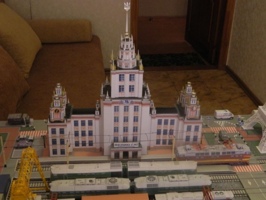 "Еще учеником я был в Словакии на коллоквиуме. Нигде не путешествовал, поэтому интересно было воспроизвести известные сооружения. Очень хочу увидеть в реальности. Некоторые вытынанки нашел в интернете, некоторые сделал сам. Рисовал в фотошопе, распечатал на принтере, а дальше уже вырезал и клеил все детали обычным "ПВА". Прикидывал масштаб, чтобы было как можно более реалистично. Было очень увлекательно почувствовать себя инженером-конструктором. Добавлял и много своей фантазии. Так, из здания Московского госуниверситета имени Ломоносова сделал вокзал. У нас в Великих Гаях вокзала нет , а у меня - есть. Кроме названия, еще и трезубец и эмблему села на нем повесил ", - отметил Криса.