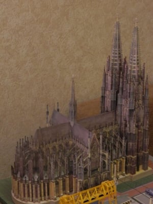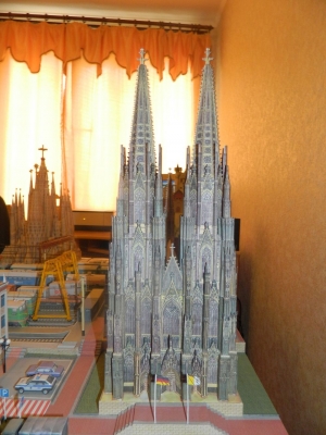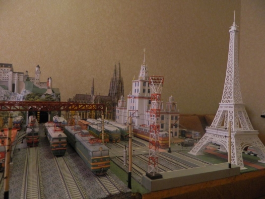"В Советском союзе были мощные поезда. Поэтому и делал наши локомотивы. Даже ездил фотографировать поезда, чтобы выглядели, как настоящие, - пояснил Владимир. - А соборы готические очень нравятся. Вот взялся за испанский Саграда Фамилия и Кельнский собор. В мире трудно найти в одном месте и мощную технику и красивые здания, а у меня на макете все есть. Городок никак не называл. Пусть будет Великие Гаи Владимира Крисы ".