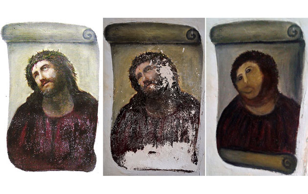 Фреска работы Элиаса Гарсии Мартинеса, изображающая Иисуса Христа, была украшением церкви близ Сарагосы более ста лет.