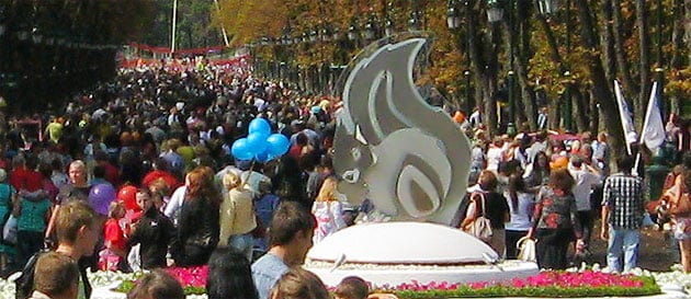 Посетителей парка вместо пролетарского писателя встречает новый символ – белочка.