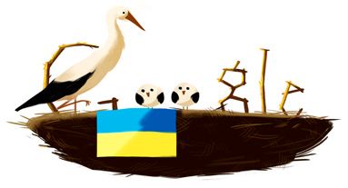 По случаю Дня Независимости Украины 24 августа поисковик Google разместил на главной странице логотип в виде гнезда с аистами, с которого свисает украинский флаг, сообщает ТСН.
