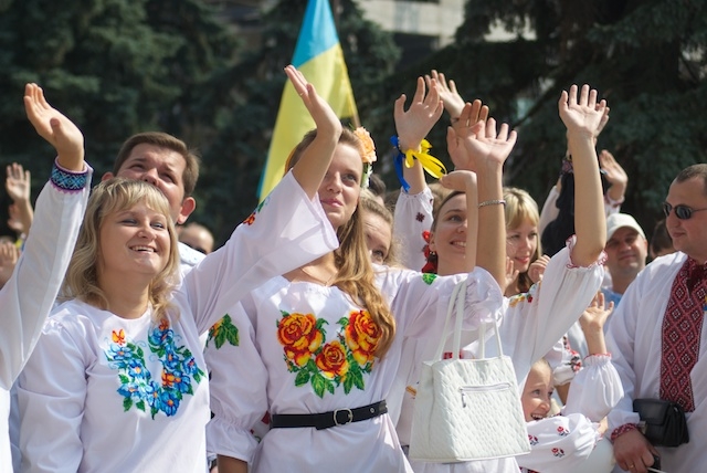 Сначала на сцене ведущие объявили результаты конкурса «Лучшая вышиванка», который проводился в течение месяца в интернете по инициативе Союза общественных организаций. Победителей назвали в нескольких номинациях. Одним из самых интересных участников стала лучанка - обладательница вышиванки еще половецких времен, а самым молодым участником конкурса был пятимесячный ребенок.