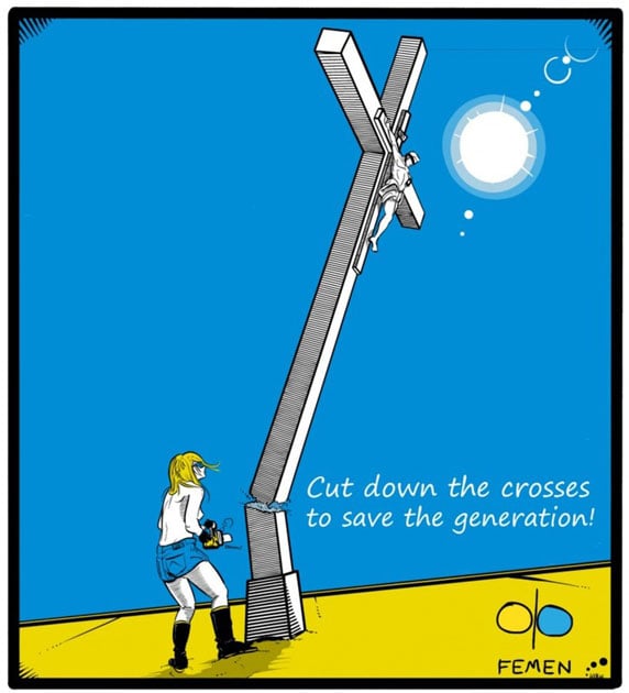 Призыв пилить кресты в знак протеста против деятельности РПЦ прозвучал от участниц движения в ответ на судебный процесс над Pussy Riot. В день оглашения приговора активистки FEMEN реализовали его, спилив деревянный крест на площади Независимости в Киеве, и сообщили о намерении продолжить аналогичные акции в ряде городов России.