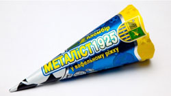 Пломбир в вафельном рожке получил название "Металлист 1925". Его упаковка оформлена в фирменных цветах футбольного клуба – желто-синих.