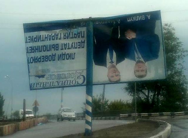 Шторм перевернул вверх ногами изображение агитационного плаката на котором Мартовицкий жмет руку губернатору Днепропетровщины Александру Вилкулу, пишет в своем Facebook Igor Filipp.