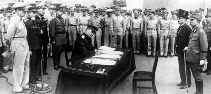 2 сентября 1945 года в 9:02 по токийскому времени на борту американского линкора «Миссури» в Токийском заливе подписан Акт о капитуляции Японии.