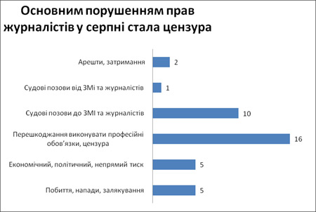 Основным нарушением журналистских прав было препятствование выполнению профессиональных обязанностей и цензура.