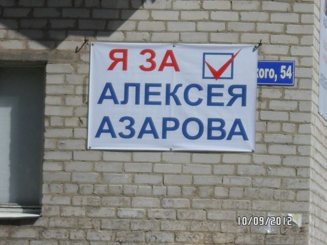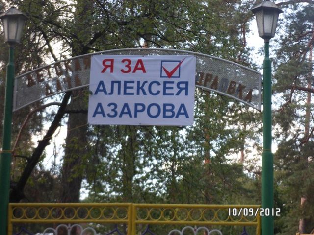 В Святогорске появились баннеры с призывами голосовать за кандидата от Партии регионов в округе №47 (город Славянск, Александровский, Славянский районы), сына премьер-министра Украины Алексея Азарова. Об этом сообщает кандидат - самовыдвиженец данному округу Фридон Векуа.