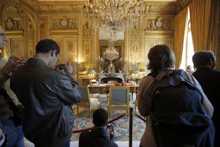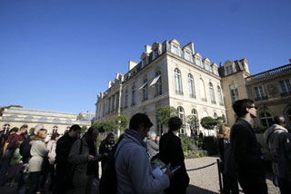 Елисейский дворец пользуется в эти выходные огромной популярностью у парижан и гостей столицы. Несколько тысяч желающих попасть на территорию символа республиканской власти вынуждены были проводить по несколько часов в очереди на вход. В эти дни публике позволено осматривать и внутренние покои Елисейского, включая знаменитый Праздничный зал, салон Мюрата, в котором проходят еженедельные заседания Совета министров, и рабочий кабинет президента страны.