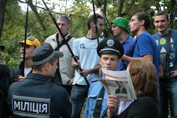 Сначала «активисты» уворачивались, чтобы не попасть в объективы фото и видеокамер, но когда на месте появился Каряка, начали в некотором роде даже позировать.