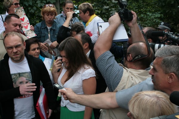 Как только молодые люди увидели защитника Юлии Тимошенко, они, как по команде, начали кричать «Брехунець» и «Власенко-провокатор», срывая тем самым брифинг защитника лидера оппозиции.