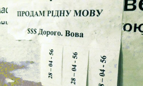 В городе Новограде-Волынском и некоторых других населенных пунктах Житомирской области в последние дни появились странные объявления с текстом: "ПРОДАМ РІДНУ МОВУ. $ $ $ Дорого. Вова."
