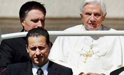 Паоло Габриэле (на фото на переднем плане) обвиняется в хищении конфиденциальных документов, в том числе и частных писем понтифика. Эти бумаги затем попали в прессу и стали поводом громких скандалов вокруг Святого престола.