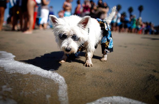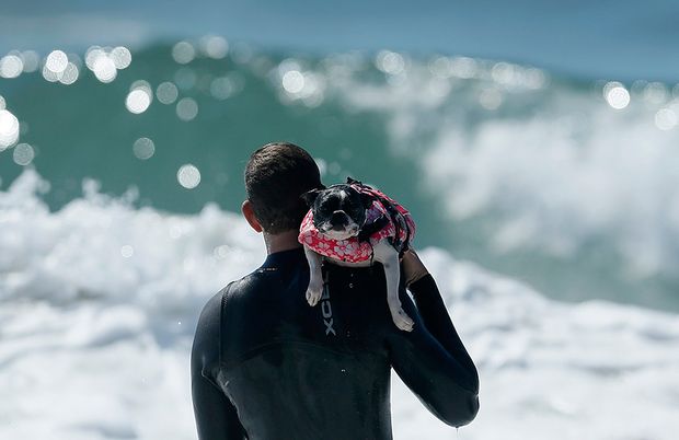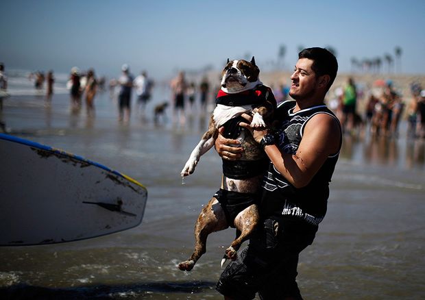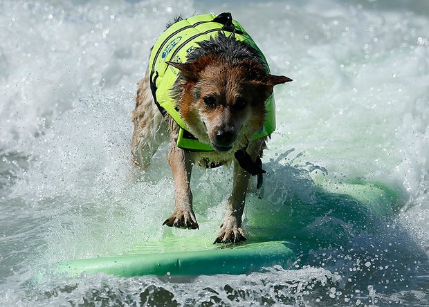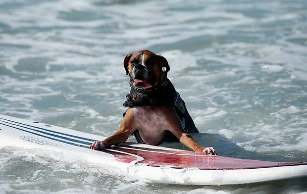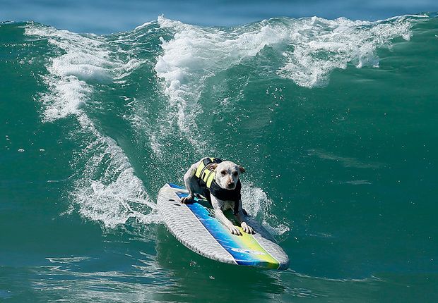 На юге американского штата Калифорния, в городе Хантингтон-Бич состоялись ежегодные соревнования по серфингу среди собак.