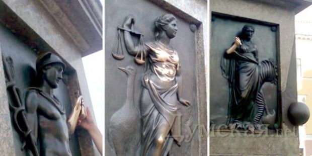 «У туристов и гостей города появилась примета: если потереть бронзовые барельефы на памятнике знаменитому градоначальнику монеткой, это – к непременной удаче. В итоге три уникальных барельефа, символизирующих «Земледелие», «Торговлю» и «Правосудие», рискуют превратиться в печальное зрелище», — говорится в сообщении.