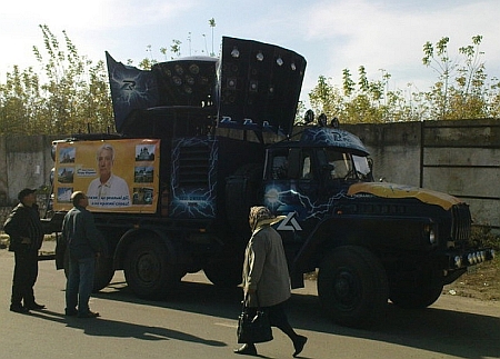 В субботу в Бурыне, что на Сумщине, из громкоговорителей звучали рассказы о достижениях Виктора Ющенко, несколько песен Святослава Вакарчука и Стаса Михайлова.