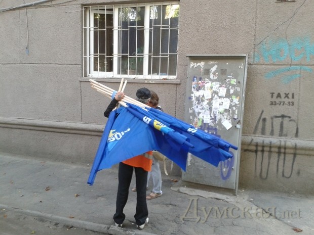 Ранее пресс-служба Одесской областной организации Комитета избирателей Украины сообщала, что 4 октября наблюдатель КИУ увидел в районе проспекта Шевченко мужчину в форме сотрудника ЖЭКа, который держал в руках флаги Партии регионов. По словам наблюдателя, мужчина признался, что работает в ЖЭКе, однако отказался сообщить, кто именно приказал ему развешивать флаги. По данным организации, «такой пример нарушения избирательного законодательства не является единичным».