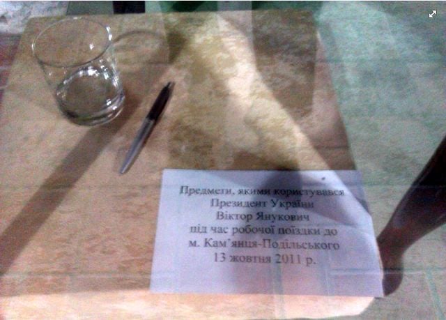 В музее Каменец-Подольского выставили стакан и ручку, которыми пользовался Президент Украины Виктор Янукович.