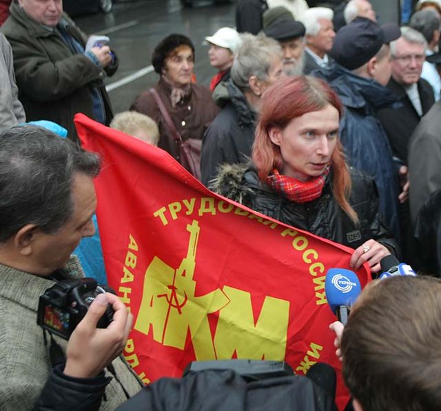 На вопрос "Что не поделили с коммунистами?", активистка отметила: "Это они с нами что-то не поделили. Я представляю комсомольскую организацию, и никому не собиралась мешать. Мы здесь проводим свою акцию. Это внутри Компартии есть проблема, а у нас проблем нет ". Представилась Александрой.