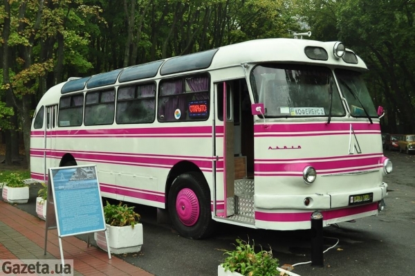 На выставке "Ретро и экзотика мотор шоу", проходившей в Киеве в минувшие выходные, показали единственный в Украине автобус ЛАЗ-695 1961 года, переоборудованный под кофейню на колесах.