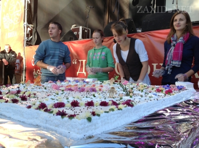 По словам организаторов, сырник изготовили по гуцульскому рецепту: без теста, из домашнего сыра и масла и добавили изюм и курагу.