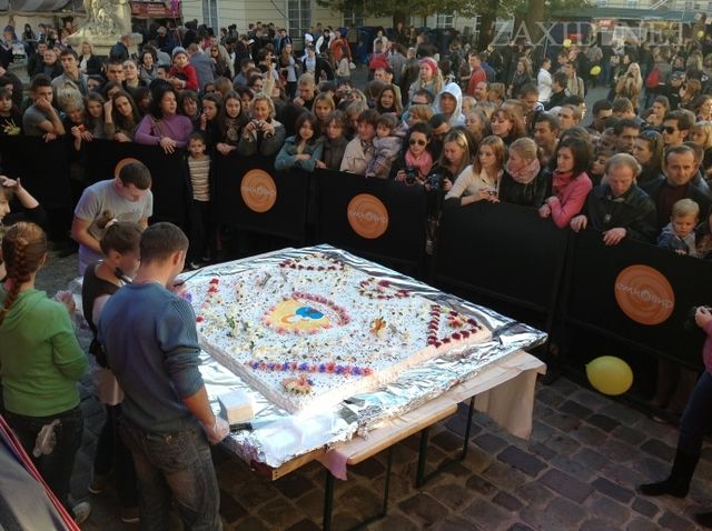 Во Львове в рамках Праздника сыра и вина прошел День сырника. Специально для этого испекли 200-килограммовый десерт.