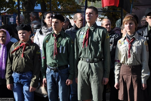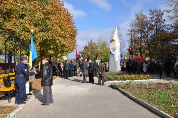 На открытие памятника собралось более 400 человек. Преимущественно это пенсионеры, пластуны и сторонники политических партий, сообщает Gazeta.ua.