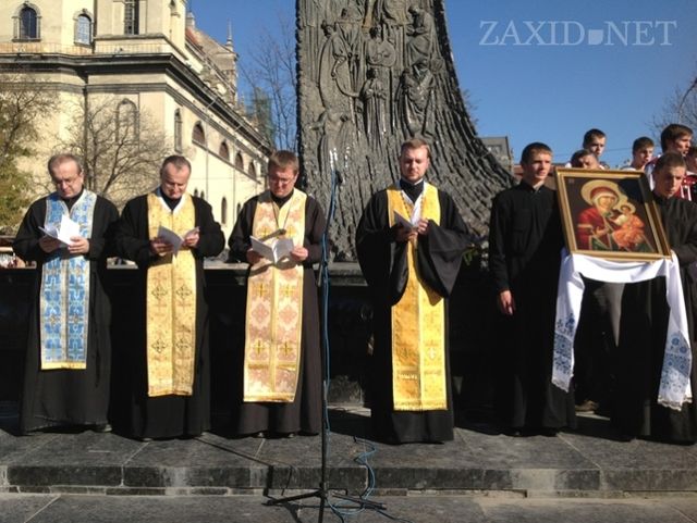 В восересенье в центре Львова, на площади возле памятника Тарасу Шевченко, состоялся экуменический молебен За честные выборы, в котором приняли участие священники разных конфессий, представители львовских ячеек политических партий и общественных организаций, мэр Львова Андрей Садовый, депутаты горсовета, кандидаты в народные депутаты Украины и обычные жители города.