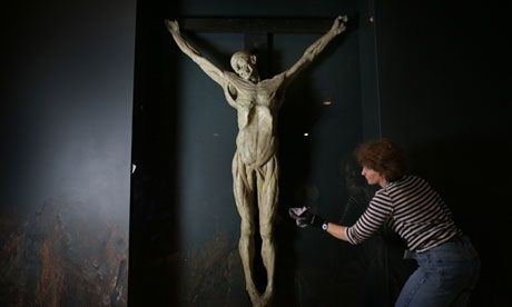 Поражает на выставке гипсовый слепок распятого тела уголовного преступника Джеймса Легга. Королевская академия художеств приобрела тело Легга для того, чтобы сделать более точным изображение Христа. Его тело сняли с виселицы и, пригвоздив к кресту, залили гипсом.