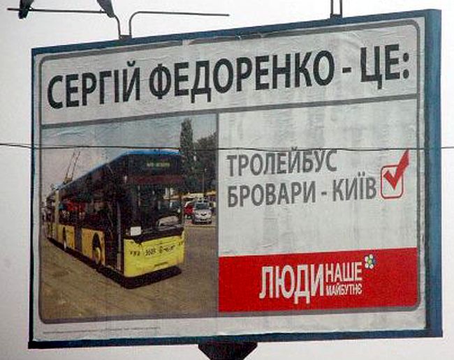 Броварчанам Федоренко известен как кандидат-троллейбус - именно такую рекламу размещали на каждом шагу.