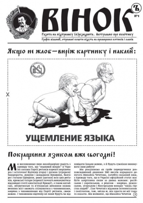 В Украине вышел третий номер сатирической оппозиционной к власти газеты "Венок". 4 страницы с острой сатирой делает за свой счет группа писателей и художников. В газете они печатаются под псевдонимами, даже стихотворение Юрия Винничука "Убей п *** са" подписано известным именем писателя Юзьо Обсерватор. Кроме страницы "Стихи из броневичка" на страницах газеты можно увидеть политические шаржи и сатирическую аналитику. Первое издание "Венка" вышло в конце августа, второе - в конце сентября. И третье - перед выборами.