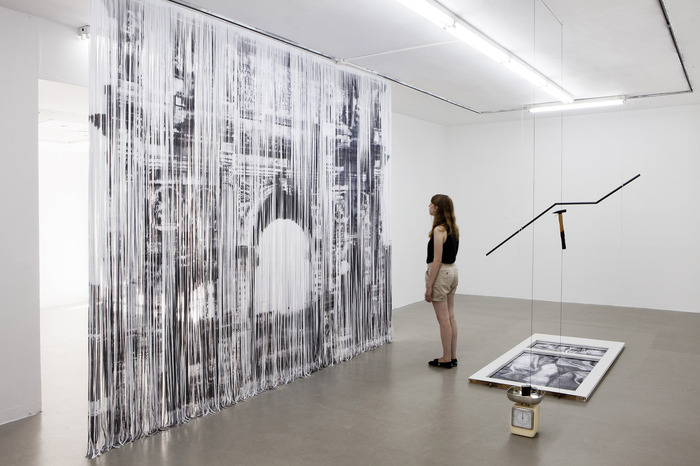 Инсталляция художницы использует переработанные материалы и простую конструкционную технику для создания сложных, размытых границ между интерьером и экстерьером. Подобные шторам конструкции покрывают обширные площади выставочного пространства, создавая иллюзию комнаты, которая простирается дальше четырех привычных стен.