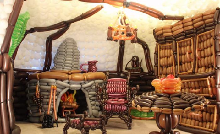 В ознаменование долгожданной премьеры фильма «Хоббит» американский художник из штата Юта, который именует себя Jeremy ‘Balloon Guy’ Telford, создал интерьер хижины Бильбо Беггинса из 2600 надувных шариков.