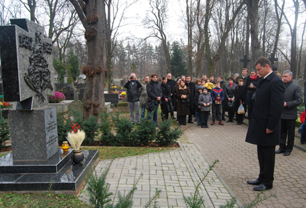 Советник-посланник посольства Украины в Польше Владислав Каневский также возложил к подножию памятника символическую композицию из пшеничных колосьев и калины. В своей краткой речи он назвал Голодомор в Украине одной из наиболее трагических страниц в истории украинцев, отметив, что он унес жизнь многих миллионов людей. "Это как будто с карты Европы исчезли целые европейские государства, такие как Австрия или Бельгия", - сказал он.