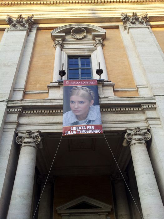 Как передает из Рима корреспондент «Главного», несколько минут назад на здании мэрии итальянской столицы на Капитолийском холме был вывешен баннер в поддержку экс-премьер-министра Украины, лидера оппозиции Юлии Тимошенко.