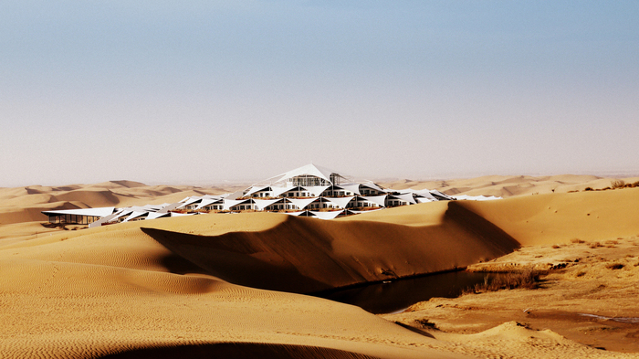 На участке площадью 30 000 м², неподалеку от реки Hantai, раскинутся белые тентообразные сооружения, расположенные по кругу. Интересно, что отель возводят исключительно из местных материалов без использования бетона и воды.