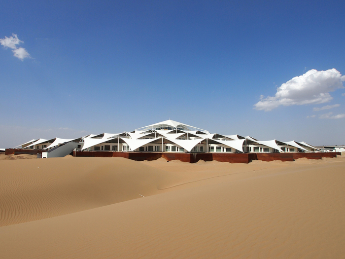 В китайской пустыне Xiangshawan в 800 км к западу от Пекина в марте 2013 года планируют открыть необычный архитектурный объект – отель в виде гигантского лотоса. Проект Lotus Hotel подготовила и воплощает в жизнь архитектурная компания PLaT Architects.