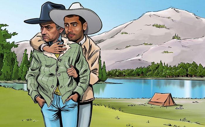 Тренер "Арсенала" запечатлен в образе кроткой французской горничной, а Жозе Моуринью и Хосепа Гвардиолу художник заставил разыграть сцену из нашумевшего фильма "Горбатая гора".