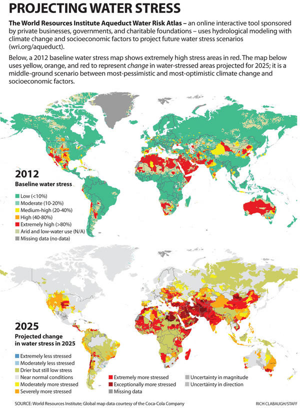 Хуже того, перемены климата, как ожидается, также приведут к нехватке воды во многих частях света.
