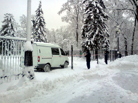 Под стенами здания парламента, где вчера депутаты из "Свободы" спилили часть забора, установили охрану. Также огражден Мариинский парк и территория возле здания ВР специальной лентой. При этом спиленная часть забора так и не была установлена на место.