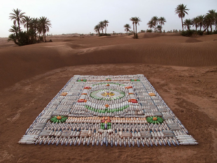 Арт-объект был сделан специально для фестиваля Taragalte Festival 2012 в марокканской пустыне. На изготовление такого временного ковра ушло несколько сотен старых пластиковых бутылок от различных жидкостей, которые ежедневно используются в быту и систематически загрязняют пустыню.