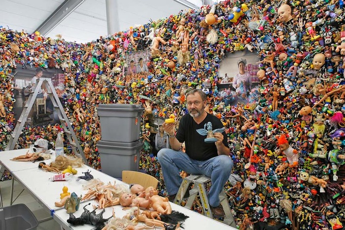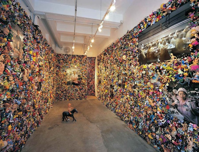 Его инсталляция The Real Toy Story рассказывает правду о китайских фабриках игрушек.