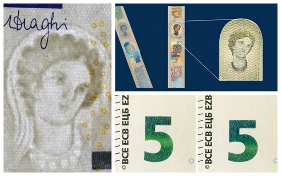 Сейчас купюра в €5 защищена голограммой с изображением созвездия Евриона.