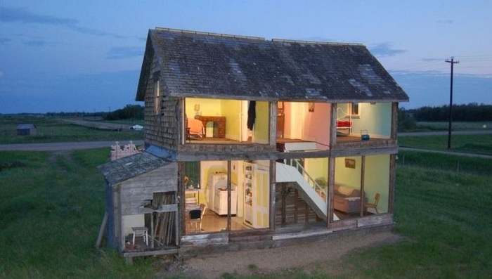 Кукольный домик в натуральную величину – это своеобразная достопримечательность городка Манитоба в Канаде. Художница Хизер Беннинг (Heather Benning) соорудила необычную инсталляцию на базе старого и заброшенного с 1960-х годов дома в пригороде, который хозяева ей просто пожертвовали.
